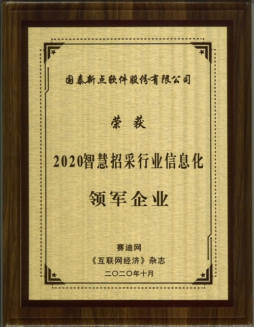 2020年度智慧招采行業(yè)信息化領(lǐng)軍企業(yè)