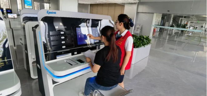此外,為進一步提升政務(wù)服務(wù)智能化水平,拓展24小時自助服務(wù)區(qū)的服務(wù)深度,中心為自助服務(wù)區(qū)配備了智能存取柜,以便于辦事群眾放置申請材料和工作人員放置結(jié)果文件,真正實現(xiàn)了全過程自助辦的閉環(huán)。